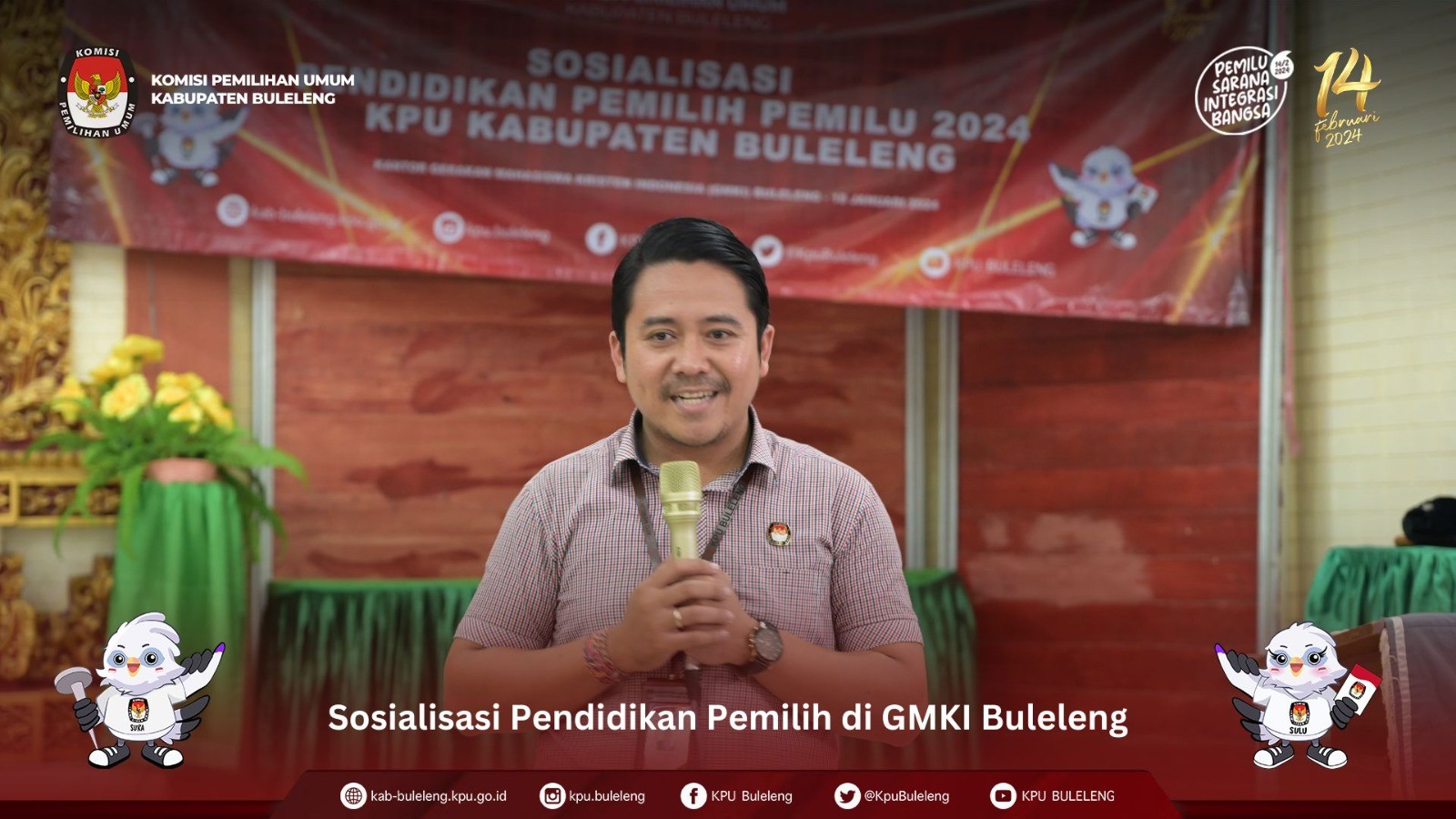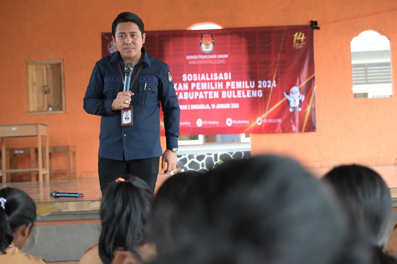 Singaraja, kab-buleleng.kpu.go.id – Komisi Pemilihan Umum (KPU) Kabupaten Buleleng melaksanakan sosialisasi pendidikan pemilih Pemilu 2024 menyasar segmen pemilih pemula di SMAN 2 Singaraja, Jumat (19/1/2024).