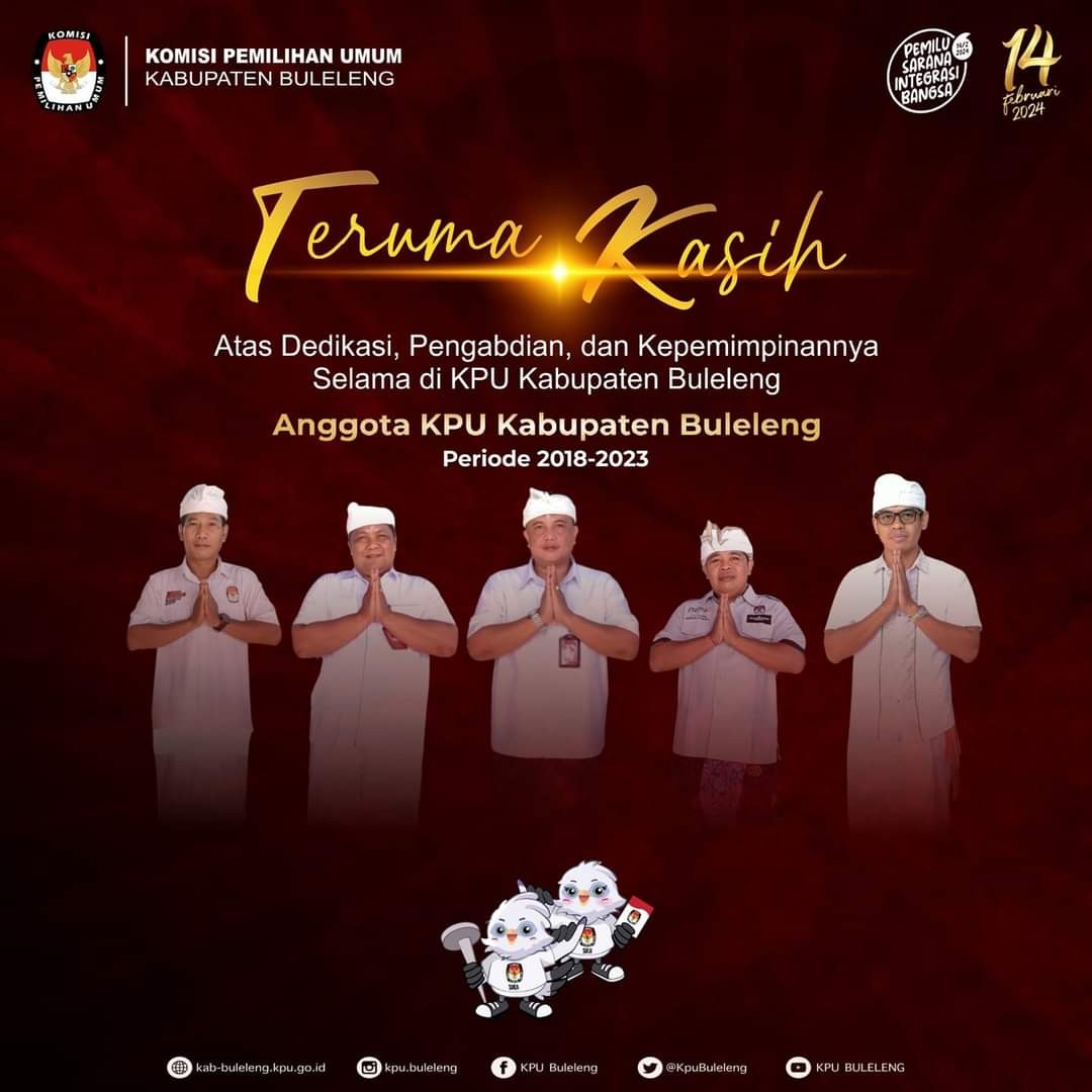 Singaraja, kab-buleleng.kpu.go.id – Ketua Komisi Pemilihan Umum Republik Indonesia (KPU RI) Hasyim Asy’ari bersama seluruh Anggota dan Sekjen KPU Bernad Dermawan Sutrisno melantik Calon Terpilih Anggota KPU Kabupaten/Kota Terpilih pada 87 (delapan puluh tujuh) Kabupaten/Kota di 9 (sembilan) Provinsi Periode 2023 – 2028 di Kantor KPU RI, Senin (30/10/2023) termasuk didalamnya lima Calon Terpilih Anggota KPU Kabupaten Buleleng Periode Tahun 2023 – 2028. Lima Calon Terpilih Anggota KPU Kabupaten Buleleng tersebut berdasarkan Pengumuman KPU RI No. 117/SDM.12-Pu/04/2023 tentang Calon Anggota KPU Kabupaten/Kota Terpilih pada 87 (delapan puluh tujuh) Kabupaten/Kota di 9 (sembilan) Provinsi Periode 2023 – 2028 adalah Gede Agus Trio Ariasnawan, Ida Bagus Nyoman Dedy Andiwinata, Komang Dudhi Udiana, Ngurah Cahyudi Wiratama dan Putu Arya Suarnata. Pada pelantikan yang juga dihadiri oleh Ketua DKPP Heddy Lugito dan Anggota Bawaslu RI Lolly Suhenty tersebut, Hasyim Asy’ari menyampaikan kepada seluruh komisioner yang baru dilantik agar segera menyesuaikan diri dengan Tahapan Pemilu 2024 yang sedang berjalan, dengan tetap berpedoman pada peraturan perundang-undangan, Peraturan KPU, Peraturan Bawaslu dan Peraturan DKPP yang berlaku serta bekerja memberikan pelayanan terbaik kepada peserta pemilu dan kepada masyarakat sebagai pemilih sesuai karakter Lembaga KPU yakni “Melayani”. Seusai pelantikan, masih bertempat di Jakarta, KPU Kabupaten Buleleng melaksanakan rapat pleno dan menetapkan Komang Dudhi Udiyana sebagai Ketua Komisi Pemilihan Umum Kabupaten Buleleng Periode 2023 – 2028 melalui Berita Acara KPU Buleleng Nomor 604/SDM.13.3-BA/5108/2023. (Ikke/Foto KPU Buleleng/Hupmas)
