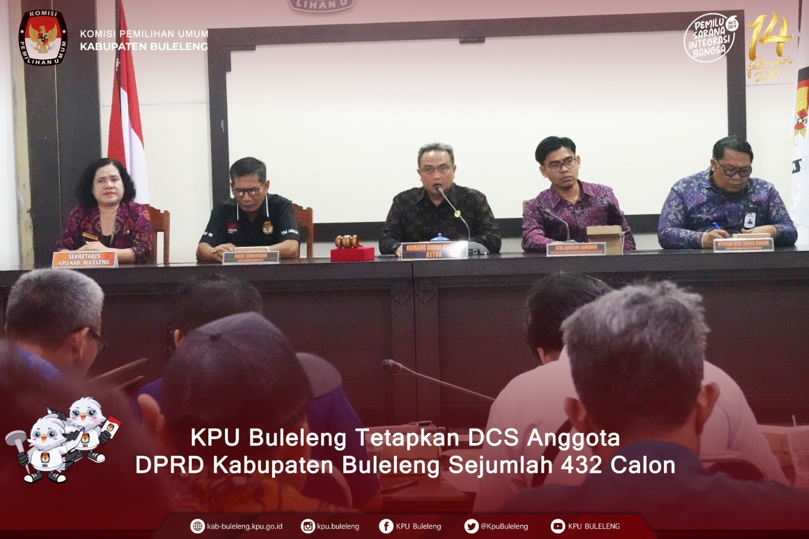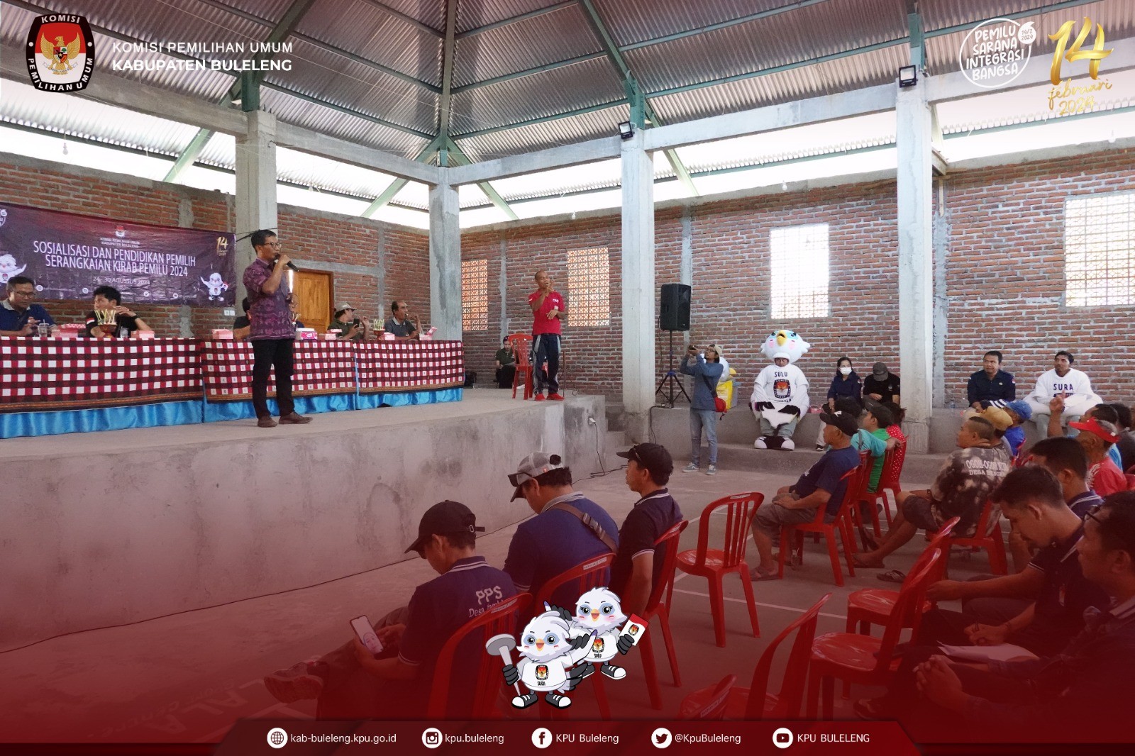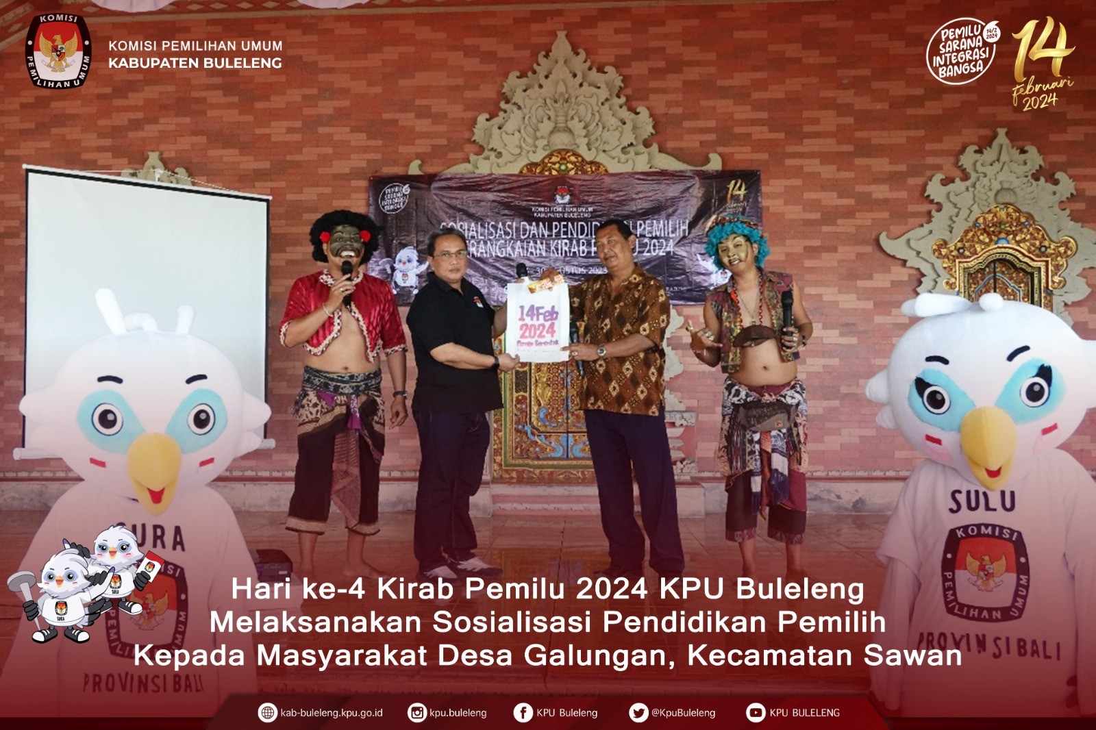 Singaraja, kab-buleleng.kpu.go.id - Hari ke-3 Kirab Pemilu Tahun 2024, KPU Kabupaten Buleleng melakukan sosialisasi pendidikan pemilih kepada penyandang disabilitas (tuna rungu) di Desa Bengkala, Kecamatan Kubutambahan, Sabtu (26/8/2023). Hadir sebagai narasumber pada sosialisasi yang juga diikuti oleh PPS se-Kecamatan Kubutambahan tersebut adalah Divisi Hukum dan Pengawasan KPU Kabupaten Buleleng, Made Sumertana. Didampingi penerjemah, Sumertana mengingatkan seluruh warga Desa Bengkala khususnya penyandang disabilitas (tuna rungu) untuk menggunakana hak pilih sebaik-baiknya dengan datang mencoblos ke TPS pada 14 Februari 2024 mendatang. Ia juga mennekankan bahwa satu suara sangat berarti dalam sebuah pesta demokrasi, karena dapat mempengaruhi nasib bangsa selama lima tahun kedepan. Pada sosialisasi yang berlangsung selama satu jam tersebut, juga hadir Divisi Sosialisasi Pendidikan Pemilih, Partisipasi Masyarakat dan SDM KPU kabupaten Buleleng Gede Bandem Samudra dan jajaran Forkomcam Kecamatan Kubutambahan. Sebelum tiba di Desa Bengkala, seperti hari sebelumnya KPU Kabupaten Buleleng melakukan kirab bendera berangkat dari Kantor KPU Kabupaten Buleleng menuju Kecamatan Tejakula diikuti oleh Partai Politik Peserta Pemilu Tahun 2024 dengan mobil masing-masing yang telah dilengkapi atribut partai. Pemberhentian pertama adalah di Jaba Pura Ponjok Batu, iring-iringan kirab berhenti dan melakukan sesi foto bersama PPK dan PPS Kecamatan Kubutambahan dan Kecamatan Tejakula. Kemudian irirng-iringan kirab bergerak ke timur menuju Kantor Camat Tejakula, lalu putar balik menuju Desa Bengkala Kecamatan Kubutambahan untuk melakukan sosialisasi. (Ikke/Foto KPU Buleleng/Kobe/Hupmas)