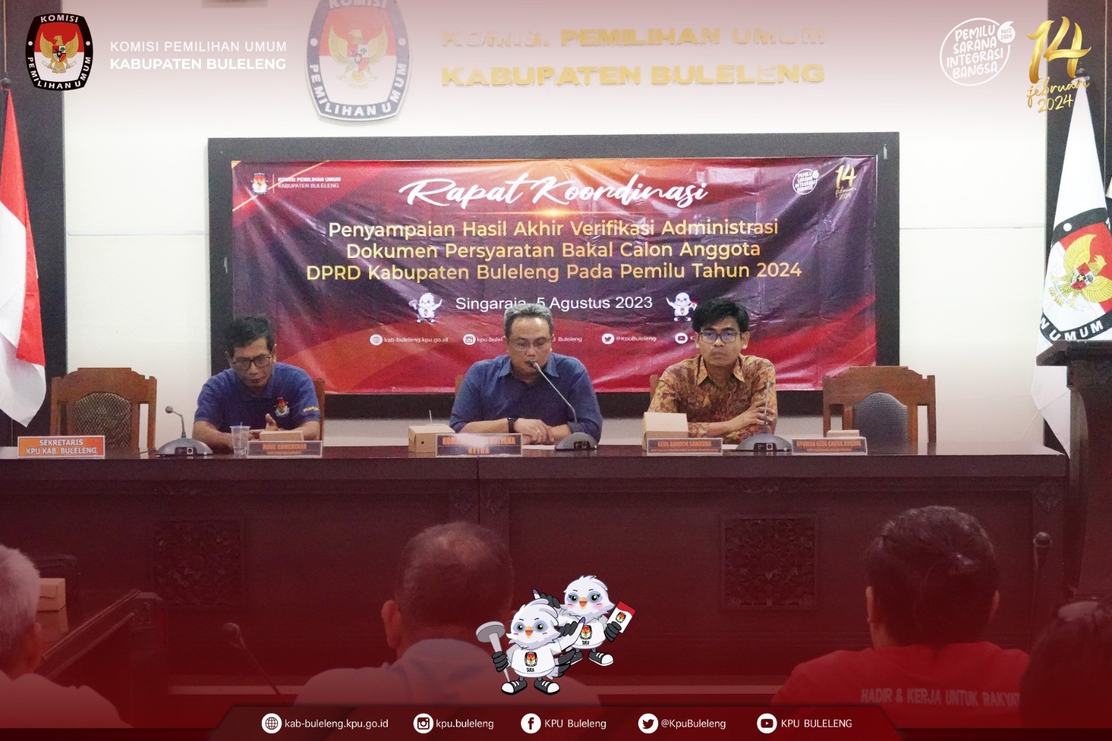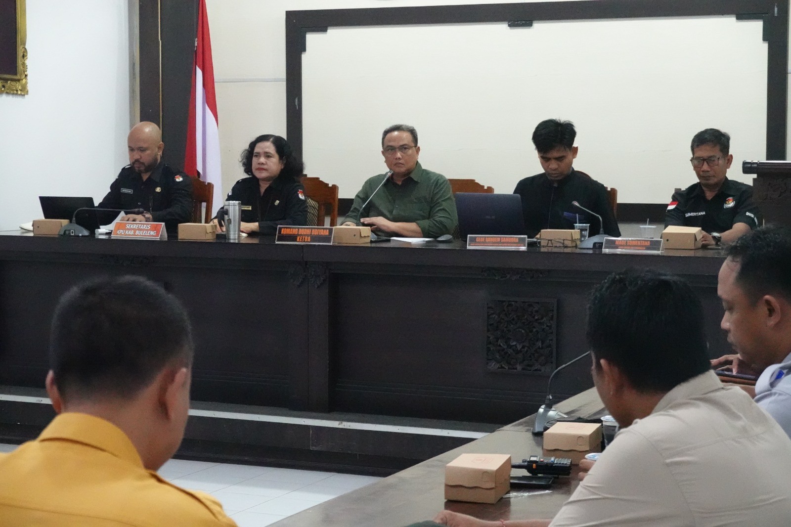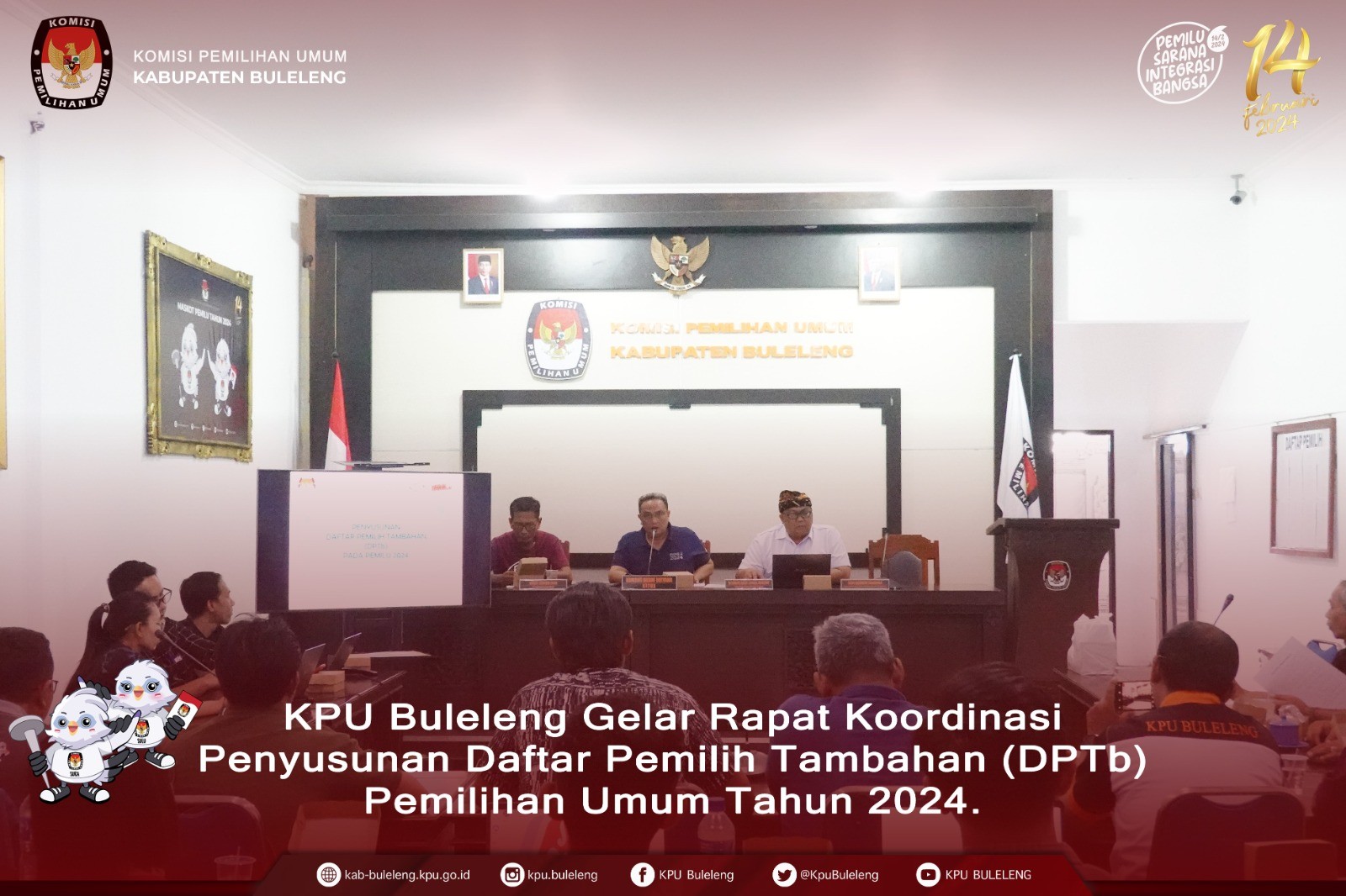 Singaraja, kab-buleleng.kpu.go.id - Ketua KPU Kabupaten Buleleng Komang Dudhi Udiyana di dampingi Divisi Hukum dan Pengawasan Made Sumertana dan Divisi Perencanaan Data dan Informasi Nyoman Gede Cakra Budaya membuka rapat koordinasi penyusunan Daftar Pemilih Tambahan (DPTb) di ruang rapat Kantor KPU Kabupaten Buleleng, Kamis,(10/08/2023). Pada rapat yang dihadiri oleh seluruh Ketua PPK se – Kabupaten Buleleng tersebut, Nyoman Gede Cakra Budaya menyampaikan bahwa Daftar Pemilih Tambahan (DPTb) adalah daftar pemilih yang telah terdaftar dalam DPT di suatu TPS yang karena keadaan tertentu pemilih tidak dapat menggunakan haknya untuk memilih di TPS tempat yang bersangkutan terdaftar dan memberikan suara di TPS lain. Keadaan tertentu merupakan persyaratan yang harus dipenuhi oleh pemilih untuk dapat dilayani sebagai pemilih yang pindah memilih, seperti menjalankan tugas di tempat lain pada saat hari pemungutan suara, menjalani rawat inap di fasilitas pelayanan kesehatan dan keluarga yang mendampingi, penyandang disabilitas yang menjalani perawatan di panti sosial atau panti rehabilitasi, menjalani rehabilitasi narkoba, menjadi tahanan di rumah tahanan atau lembaga pemasyarakatan, atau terpidana yang sedang menjalani hukuman penjara atau kurungan, tugas belajar/menempuh pendidikan menengah atau tinggi, pindah domisili, tertimpa bencana alam, bekerja di luar domisili. Pemilih dapat mengurus dokumen pindah memilih selambat-lambatnya 30 hari sebelum hari pemungutan suara yaitu tanggal 15 januari 2024. Setelah tanggal 15 Januari 2024 hingga selambat-lambatnya 7 hari sebelum pemungutan suara yaitu tanggal 7 Februari 2024 pemilih dapat mengurus pindah memilih sebagaimana diatur dalam putusan MK nomor 20/PUU-XVII/2019. Pemilih yang ingin pindah memilih dipastikan terdaftar dalam DPT melalui situs https://cekdptonline.kpu.go.id. Daftar Pemilih Tambahan berbasis aplikasi Sidalih, dimana pemilih dapat mengurus pindah memilih melalui KPU Kabupaten/Kota, PPK, dan PPS asal atau tujuan. (kobe.red/Foto KPU Buleleng/hupmas)