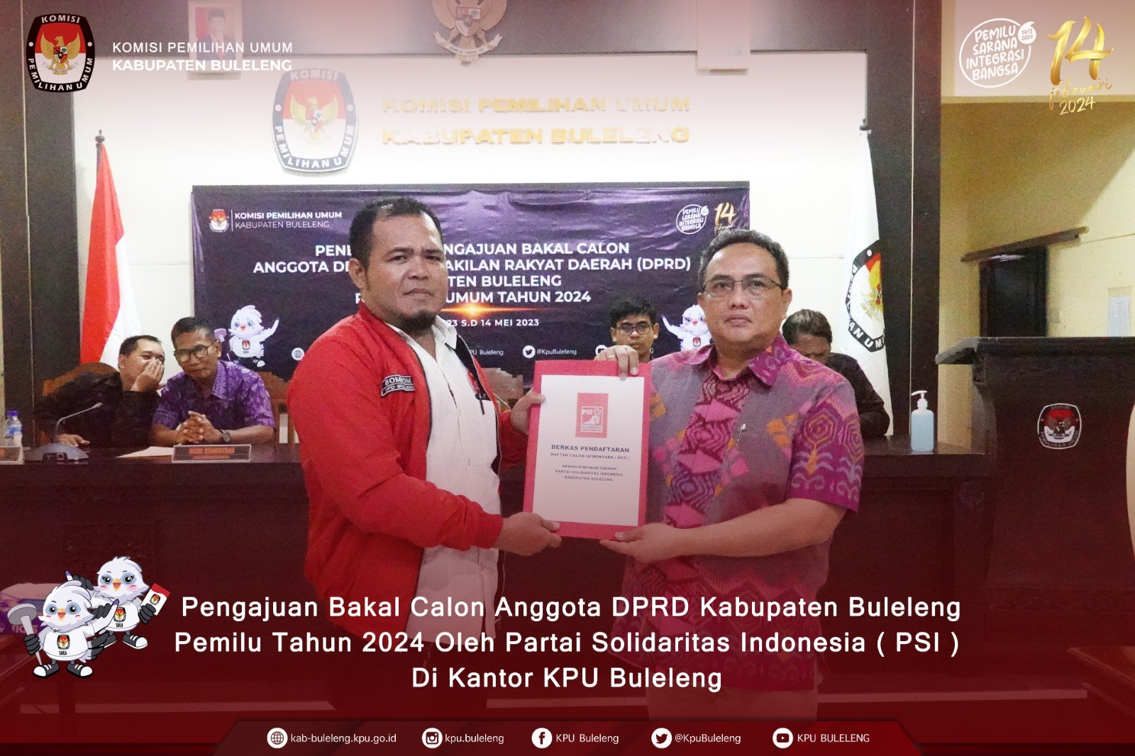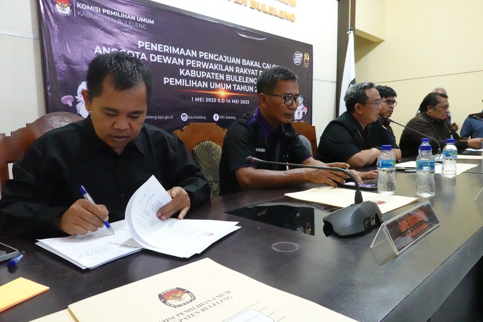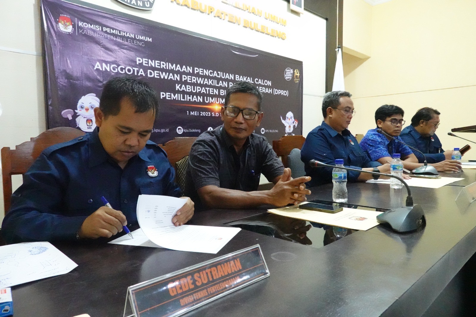 Singaraja, Kab-buleleng.kpu.go.id - Hingga Senin (15/5/2023) Pkl. 03.00 wita dini hari, Komisi Pemilihan Umum (KPU) Kabupaten Buleleng telah menerima pengajuan Bakal Calon Anggota DPRD Kabupaten Buleleng sebanyak 574 dari 17 Partai Politik Peserta Pemilu Tahun 2024 yang rinciannya dapat dilihat pada tabel berikut : Hingga registrasi ditutup pada Minggu, 14 Mei 2023 Pkl. 23.59 Wita, hanya satu partai politik yang tidak mengajukan bakal calon, yakni Partai Garuda. Menurut hasil koordinasi yang dilakukan Divisi Teknis Penyelenggara Pemilu KPU Kabupaten Buleleng, Gede Sutrawan dengan Ketua DPC Partai Garuda Kabupaten Buleleng Bagus Sugi Okta Wirawan melalui telepon, menyatakan bahwa memang benar Partai Garuda tidak mengajukan bakal calon dikarenakan sesuatu dan lain hal. Partai politik yang pengajuan bakal calonnya sudah dinyatakan diterima oleh KPU Kabupaten Buleleng, selanjutnya akan melalui tahap verifikasi administrasi bakal calon yang dijadwalkan dari tanggal 15 Mei – 23 Juni 2023. (Ikke/Foto KPU Buleleng/Kobe/Hupmas)