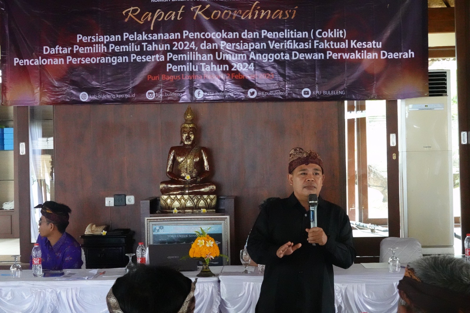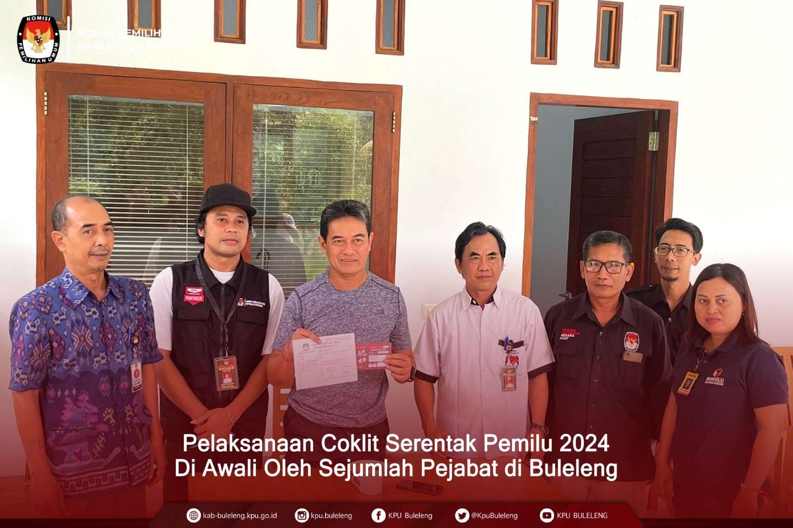 Singaraja, kab-buleleng.kpu.go.id – Pelaksanaan Pencocokan dan Penelitian (Coklit) Data Pemilih untuk Pemilu Tahun 2024 di Kabupaten Buleleng melibatkan 2.274 Panitia Pemutakhiran Data Pemilih (Pantarlih) yang tersebar di 148 desa/kelurahan. (12/02/2023) Pelaksanaan Coklit yang dilaksanakan bertepatan dengan hari pelantikan dan pengambilan sumpah Pantarlih tersebut, juga melibatkan beberapa pejabat tinggi di lingkungan Pemerintah Daerah Kabupaten Buleleng diantaranya Ketua DPRD Kabupaten Buleleng Gede Supriatna (TPS 6 Desa Tejakula), TPS Sekretaris Daerah Kabupaten Buleleng Drs. Gede Suyasa, M.Pd (TPS 5 Desa Sambangan), TPS Kepala Dinas PMD Kabupaten Buleleng Nyoman Agus Jaya Sumpena, SE (TPS 1 Kelurahan Banjar Jawa), TPS Kepala Dinas Kominfosanti Kabupaten Buleleng Ketut Suwarmawan, S.STP., MM (TPS 3 Kelurahan Sukasada), TPS Kepala Dinas Dukcapil Kabupaten Buleleng Made Juwartawan, S.STP., MM (TPS 2 Seririt) dan di TPS Kepala Kesbangpol Kabupaten Buleleng Komang Kappa Tri Aryandono, SIP (TPS 13 Kelurahan Banjar Jawa). Tahapan Coklit pada Pemilu Tahun 2024 akan dilaksanakan hingga tanggal 14 Maret 2023. Ketua KPU Buleleng Komang Dudhi Udiyana menghimbau kepada seluruh masyarakat dan pihak terkait lainnya agar turut bersama – sama untuk menyukseskan pelaksanaan tahapan Coklit kali ini dengan menyambut baik para petugas Pantarlih yang akan mendatangi pemilih ke rumah masing-masing. Saat ini pelaksanaan pemutakhiran data pemilih juga telah didukungan dengan aplikasi E-Coklit sebagai sarana pendukung agar pelaksanaan pemutkahiran berjalan lebih mudah dan efisien. (Ikke/Foto KPU Buleleng/Kobe/hupmas)