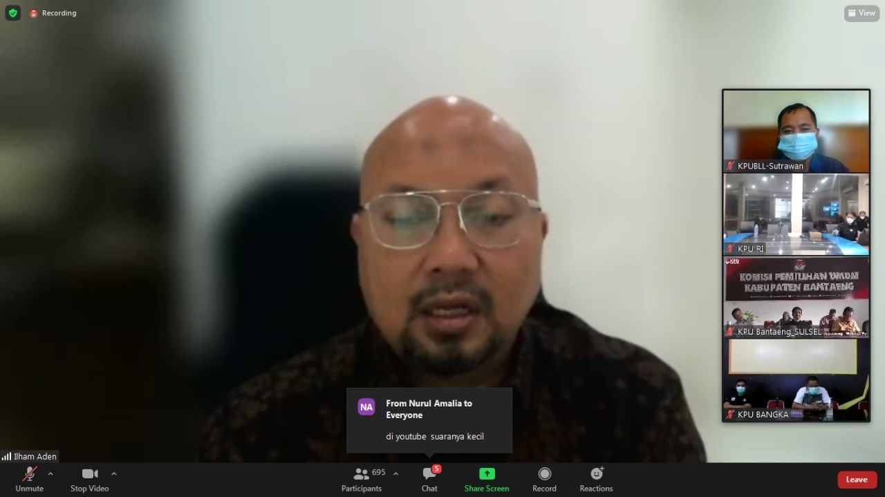Anggota KPU Kabupaten Buleleng Divisi Teknis Penyelenggaraan, Gede Sutrawan menghadiri Rakor Evaluasi Pemungutan dan Penghitungan Suara Tahun 2020 yang digelar secara daring oleh KPU RI. Pada rakor ini, Anggota KPU RI Viryan Asis menyampaikan bahwa saat ini KPU Bekerja dengan melanjutkan yang sudah ada dengan memperbaiki kualitas pemilu baik dari segi regulasi maupun dari teknis. Umumnya, permasalahan yang muncul karena regulasi yang dianggap kurang sesuai dengan situasi di lapangan. Sehingga dalam evaluasi ini dilakukan dengan dua sesi yaitu sesi evaluasi regulasi dan sesi evaluasi teknis menyangkut situasional dilapangan. ”Untuk itu perlu adanya evaluasi secara konfrehensif serta diperlukan berbagai pengorbanan untuk mensukseskanya,” ungkapnya. Sementara Evi Novida Ginting sebagai pemateri menyampaikan bahwa KPU tidak boleh berhenti dalam berkreativitas karena besarnya harapan masyarakat akan suksesnya pemilu dan pemilihan yang cepat, murah dan menjamin kepastian konversi suara menjadi angka-angka dan kursi dengan memanfaatkan teknologi. Selama ini, banyak hal yang menjadi kendala secara teknis bagi penyelenggara di tingkat KPPS, PPS ataupun PPK. Evi Novida juga concern terhadap permasalahan di KPPS terkait formulir daftar hadir dengan kolom tanda tangan atau sidik jari serta salinan daftar hadir yang berlembar lembar. Diperlukan perubahan baik bentuk maupun penamaan serta perlu perubahan kode dan format formulir yang akan dikaji untuk dilakukan perubahan demi kemudahan penyelenggara di TPS. Untuk itu kebijakan pengunaan SIREKAP adalah sebuah kebutuhan untuk mempercepat dan akurasi hasil penghitungan dengan pindai hasil dari formulir menjadi angka angka. Pada sesi memberikan masukan dan evaluasi, Gede Sutrawan mengusulkan selain penyederhanaan formulir perlu adanya aplikasi di tiap TPS untuk membantu rekapitulasi. Karena banyaknya jenis pemilihan yang membingungkan bagi sebagaian KPPS. Untuk itu dirasa perlu adanya aplikasi untuk membantu KPPS sebelum disalin kedalam formulir. (roe)