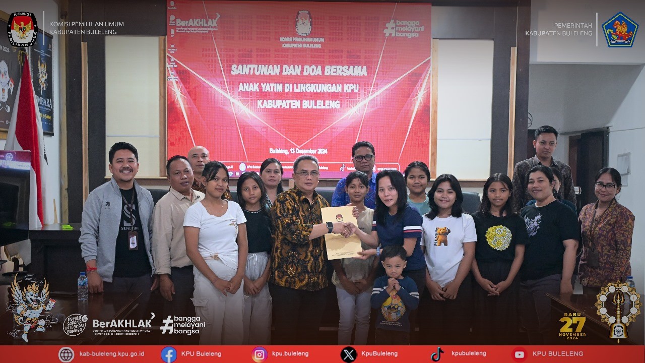 Singaraja, kab-buleleng.kpu.go.id – Dalam rangka mempererat tali silaturahmi serta meningkatkan kepedulian terhadap sesama, Komisi Pemilihan Umum (KPU) Provinsi Bali Bersama KPU Kabupaten/Kota Se-Bali melaksanakan kegiatan sosial memberikan santunan kepada anak yatim pada hari Jumat, (8/5/2025). Acara dibuka oleh Ketua KPU Buleleng Komang Dudhi Udiyana, yang dilanjutkan dengan arahan dari Ketua KPU Provinsi Bali I Dewa Agung Gede Lidartawan yang menyampaikan bahwa dalam masa jeda pelaksanaan Pemilu dan Pemilihan KPU melakukan kegiatan sosial yang menjadi komitmen bersama untuk terus mendorong semangat kepedulian sosial sebagai bagian dari nilai nilai kebangsaan yang dijunjung tinggi dalam pelaksanaan demokrasi. Pemberian santunan kepada anak yatim merupakan donasi dari KPU Provinsi dan KPU Kabupaten/Kota yang dilaksanakan di Panti Asuhan Ganesha Sevanam yang dirangkaikan dengan bersepeda bersama bertujuan untuk memperkuat rasa kebersamaan dan solidaritas KPU Se-Bali dan untuk kebugaran fisik. Acara ini mengambil start di monument Perang Jagaraga Kecamatan Sawan dengan finish di Kantor KPU Kabupaten Buleleng. Hadir ikut serta dalam acara ini yaitu KPU Kabupaten Buleleng, Karangasem, Klungkung, Gianyar, Bangli, Tabanan, Badung, Jembrana dan KPU Kota Denpasar. Kegiatan ini merupakan bentuk rasa syukur sekaligus sebagai ajang untuk berbagi Besar harapan melalui kegiatan bakti sosial ini KPU menjadi Lembaga yang dekat dengan Masyarakat dan turut aktif masyarakat nantinya mendukung pelaksanaan Pemilu dan Pemilihan yang akan datang. Dijadwalkan pelaksanaan bakti sosial dan bersepeda Bersama dua minggu selanjutnya menuju KPU Kabupaten Karangasem. (Parhumas/KPU Buleleng)