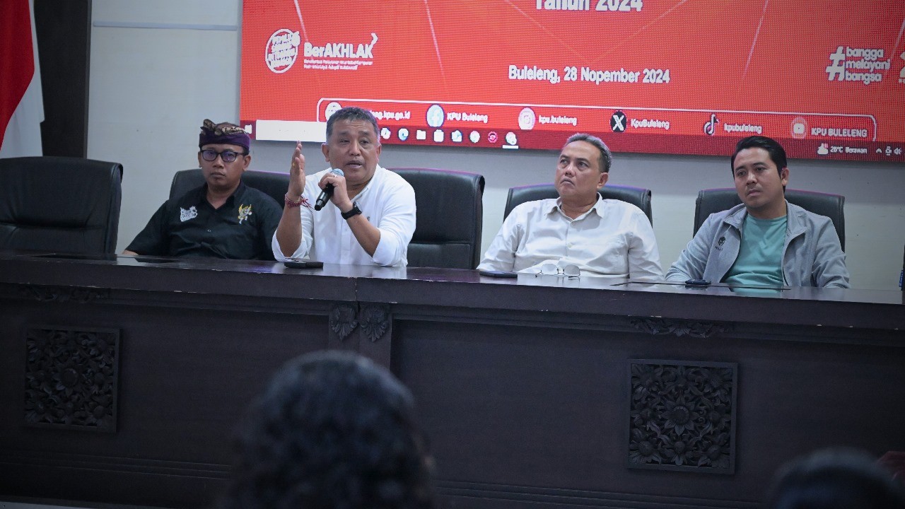 Singaraja, kab-buleleng.kpu.go.id – Dengan berakhirnya tahapan pemungutan suara dan penghitungan suara pemilihan Gubernur dan wakil Gubernur Bali, Bupati dan Wakil Bupati Buleleng Tahun 2024, Komisi Pemilihan Umum (KPU) Kabupaten Buleleng melaksanakan Media conference bertempat di ruang rapat kantor KPU Kabupaten Buleleng, Kamis(28/11/2024) Dalam sambutannya Ketua KPU Kabupaten Buleleng Komang Dudhi Udiyana menyampaikan bahwa Pilkada serentak tahun 2024 sudah masuk pada tahapan Pemungutan suara dan Penghitungan suara dengan berjalan jujur dan Adil, berintegritas serta bersinergi dengan seluruh pihak terkait. Tahapan rekapitulasi akan dilaksanakan oleh kecamatan dimulai pada tanggal 29 November sampai dengan 3 Desember 2024. Rekapitulasi serentak di Sembilan kecamatan se Kabupaten Buleleng semoga berjalan lancar dimana jadwal pelaksanaan pleno dimasing masing kecamatan berbeda beda. Ketua KPU Provinsi Bali I Dewa Agung Gede Lidartawan dalam arahannya menyampaikan pada pelaksanaan pilkada 2024 di Provinsi Bali dapat berjalan dengan aman, lancar, damai dan kondusif. Hasil pilkada di quickcount pilkada 2024 Kabupaten.Buleleng yang beredar di medsos tidak ada yang membuat isu isu negatif di media sosial dari sana kita bisa menilai masyarakat sekarang sudah cerdas dalam menentukan hak pilihnya. Maka malam ini kami mengapresiasi para media di Buleleng yang terus memberikan saran dan masukan, bagi saya pembelajaran itu akan terus menerus bukan berhenti disini Harapan saya rekapitulasi di kecamatan bisa selesai lebih awal dan apapun yang mungkin di minta oleh masyarakat agar di lakukan apabila buka kotak suara kita buka,untuk memastikan pilkada serentak 2024 di Kabupaten Buleleng terbuka. Untuk diketahui dalam pelaksanaan pemungutan suara dan penghitungan suara, berdasarkan surat Ketua KPU RI Nomor 2564/SDM.06.7-sd/01/2024 tertanggal 8 November 2024 tentang kebijakan jaminan BPJS Ketenagakerjaan untuk badan adhock yang bertugas di Pilkada serentak 2024,bahwa badan adhock dikategorikan sebagai pekerja yang harus dijaminkan di dalam BPJS Ketenagakerjaan. Dalam pelaksanaan pemungutan dan penghitungan suara semua badan adhock dilindungi dalam hal mengalami sakit, cedera atau yang mengalami kecelakaan dalam bertugas hingga meninggal dunia.(Parhumas/KPU Buleleng)