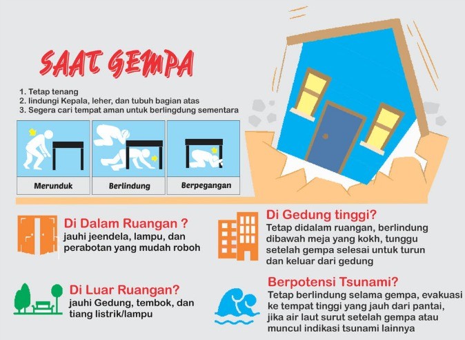 - Segera tinggalkan gedung sesuai dengan petunjuk team evakuasi tanggap darurat atau ikuti arah jalur evakuasi/arah tanda keluar, jangan kembali untuk alasan apapun;